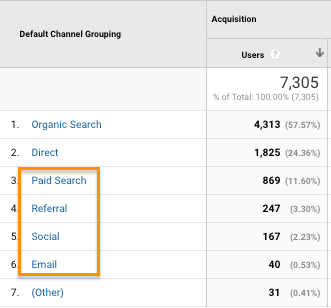 By default, the Default Channel Groupings are set to be automatically interpreted by GA with internal variables. This makes it a great place to test out your Mediums, and click through to the Sources coming through them, and then to your campaigns.
